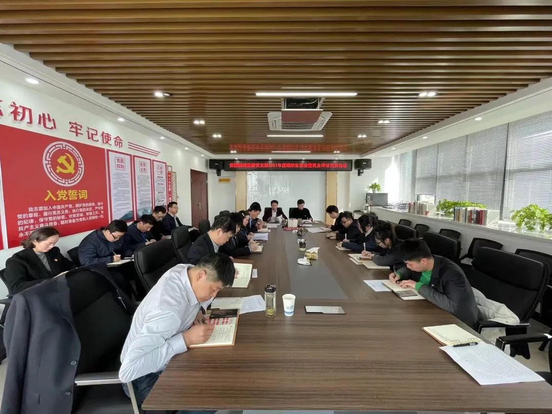 3月29日下午,安徽融城集團黨支部召開2021年度組織生活會暨民主評議黨員會議,支部全體黨員參加。高新區(qū)黨工委委員、管委會副主任高子偉同志到會指導。