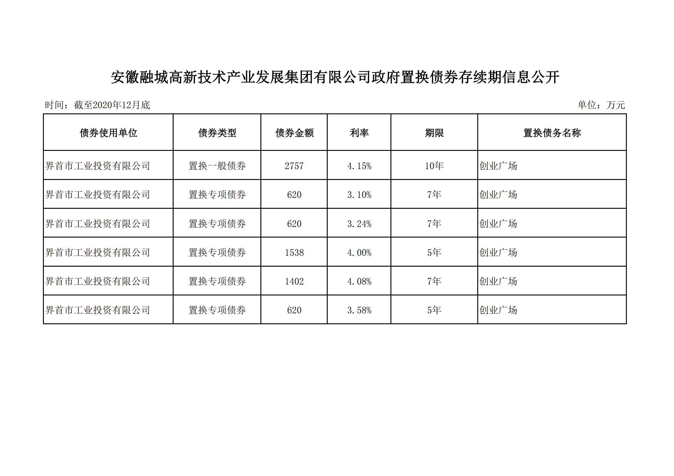 安徽融城高新技術產業(yè)發(fā)展集團有限公司政府債券存續(xù)期信息公開表0