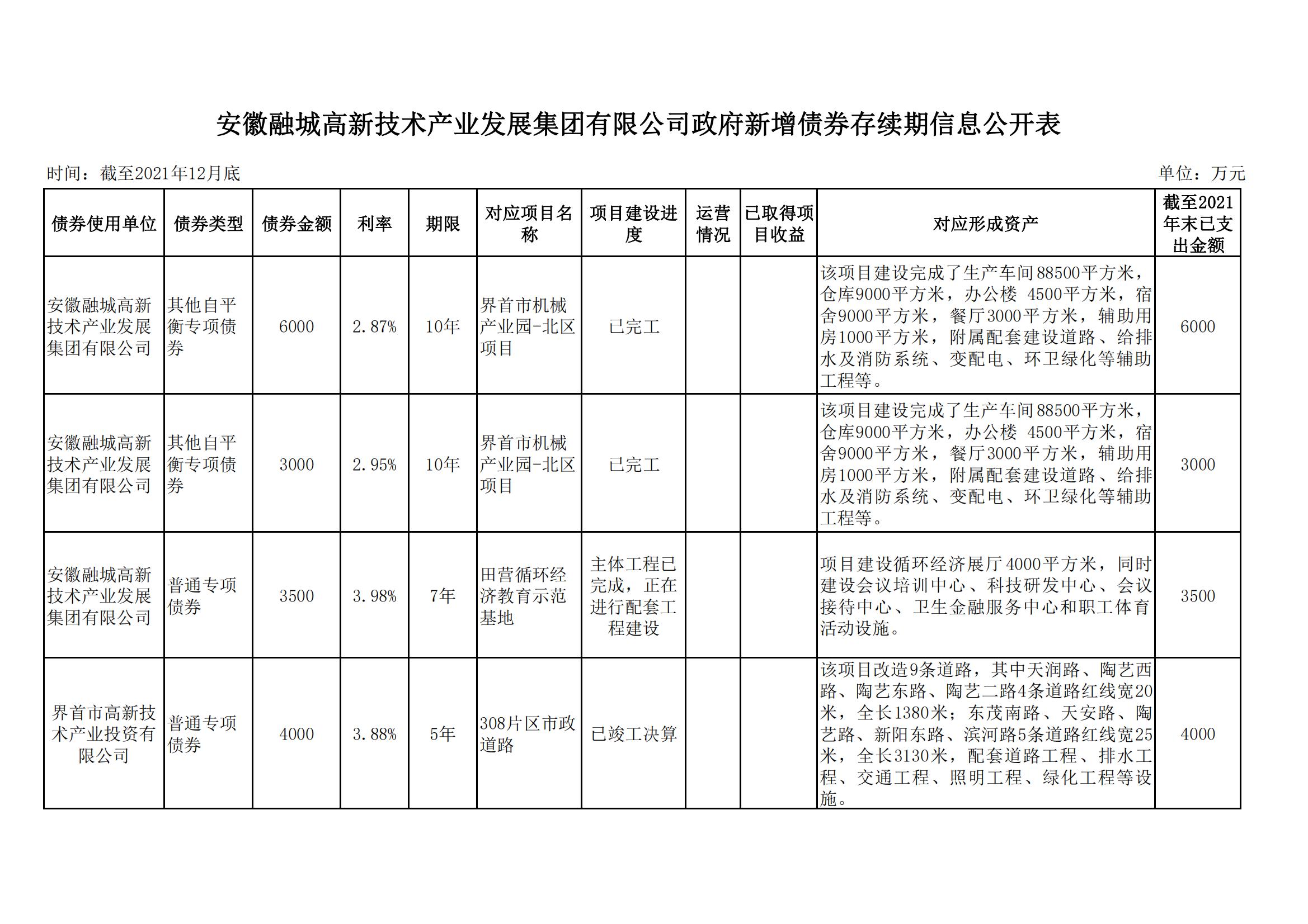 安徽融城高新技術(shù)產(chǎn)業(yè)發(fā)展集團(tuán)有限公司政府新增債券存續(xù)期信息公開(kāi)表