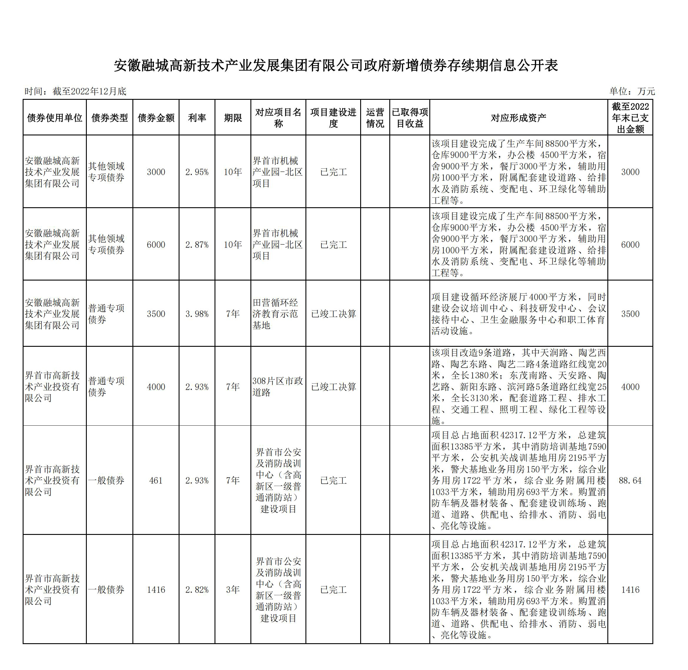 安徽融城高新技術(shù)產(chǎn)業(yè)發(fā)展集團(tuán)有限公司政府新增債券存續(xù)期信息公開表